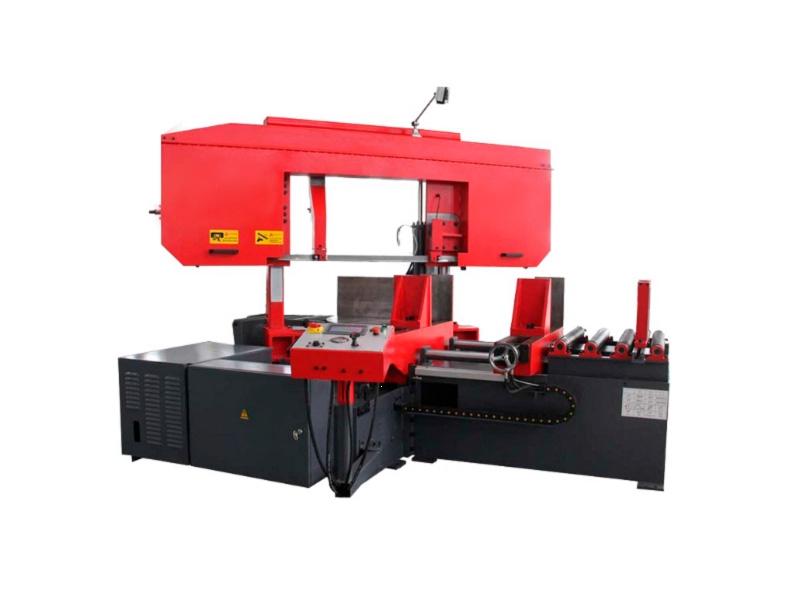 Автоматический ленточнопильный станок, предназначен для пиления труб и сплошных заготовок, максимальным диаметром круга 600 мм и прямоугольной заготовки 850x600 мм под углом 90°, а также с возможностью поворота рамы для пиления заготовок под углом 45°.
