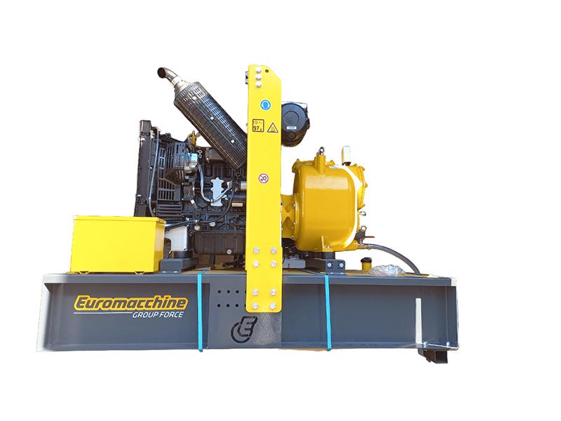 Состоит из центробежного насоса Victor S 150 с встроенным обратным клапаном, дизельного двигателя KOHLER KDI 1903M или DEUTZ F3L2011 для вращения вала насоса; рамы с интегрированным топливным баком.