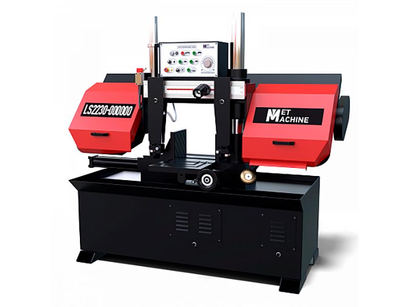 Ленточнопильный станок LS2230-000000 полуавтоматического типа MetMachine с асинхронным двигателем мощностью 2,2 кВт предназначен для резки различных материалов, включая металлы, пластмассу, графит и теплоизоляцию, под углом 90°.