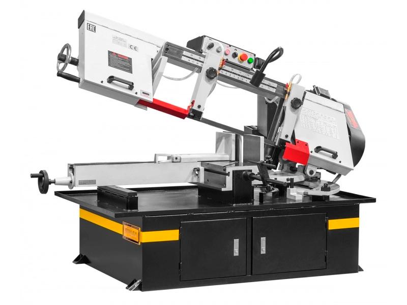 В рабочей зоне резания полотно точно ведется двумя направляющими головками. Станок имеет неподвижные тиски и поворотный механизм рамы, для пиления под углом необходимо изменить положение рамы относительно неподвижных тисков. Высота полотна 27мм позволяет пилить c высокой точностью и параллельностью полые и профильные заготовки под различными углами, в том числе и сплошные заготовки.