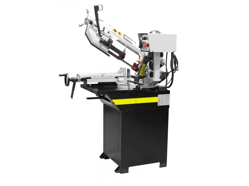 Модель имеет быстрорегулируемые тиски для резки под углом, поворачивается рама, а не заготовка. Тиски с системой быстрого отвода ускоряют процесс смены заготовки (ускоренный отвод подвижной губки происходит без вращения маховика). Зажим заготовки осуществляется тисками вручную, подача заготовки - также вручную. Наличие системы СОЖ в стандартной комплектации – позволяет добиться высокой производительности.